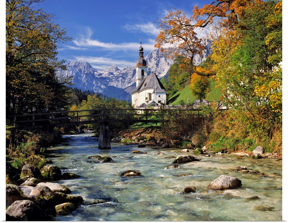 <p>Germany, Bavaria, Ramsau. The fall foliage adds to the beauty of this small church in Ramsau near Berchtesgaden, Bavaria, Germany.</p>