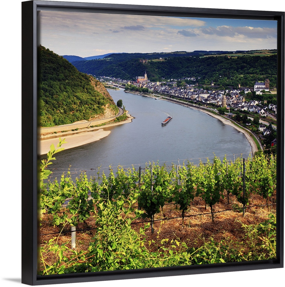 <p>Germany, Deutschland, Rhineland-Palatinate, Rheinland-Pfalz, Rhine, Central Europe, Rhine valley, Oberwesel, View of the village on the Rhine river with its three landmarks, Sankt Martins Kirche (White church), Liebfrauenkirche (Red church) and Schonburg castle</p>