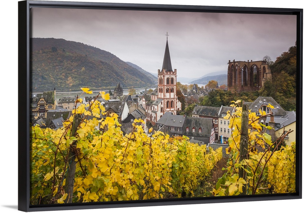<p>Germany, Rhineland-Pfalz, Bacharach, elevated town view in autumn.</p>