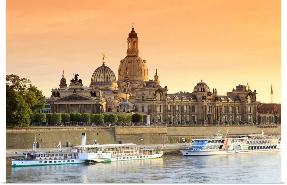 <p>Germany, Saxony, Dresden, Elbe River and Old town skyline</p>