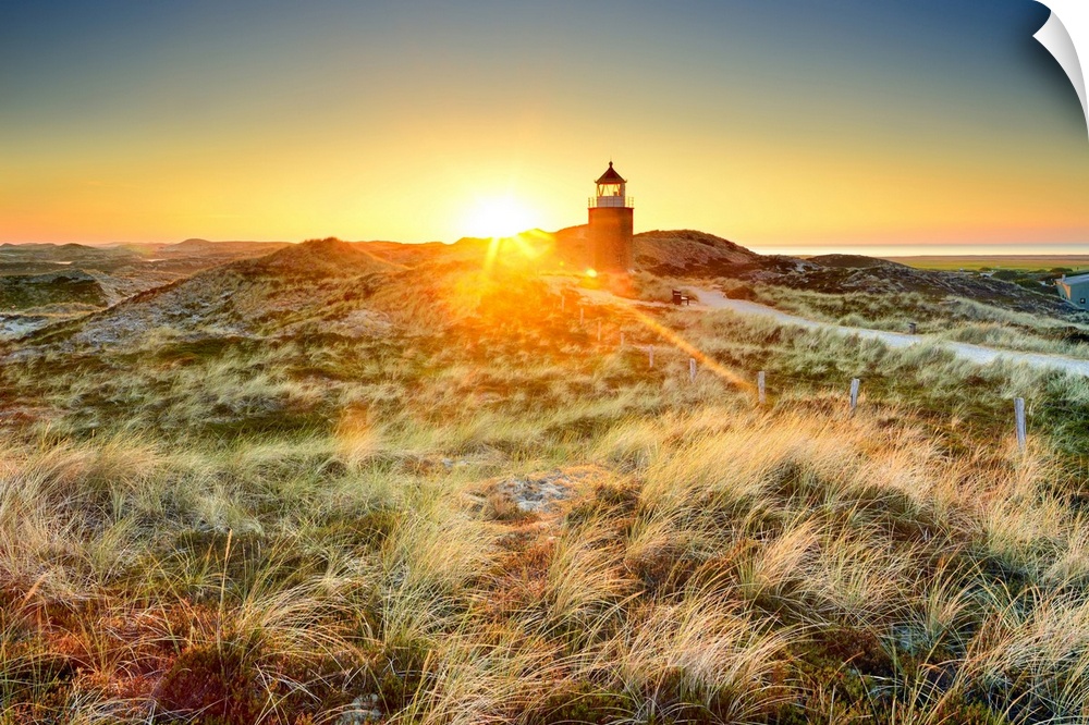 <p>Germany, Schleswig-Holstein, North sea, North Frisian Island, Sylt Island, Altes Quermarkenfeuer Rotes Kliff, also called Rotes Kill Lighthouse among Uwe Dunes in Kampen.</p>