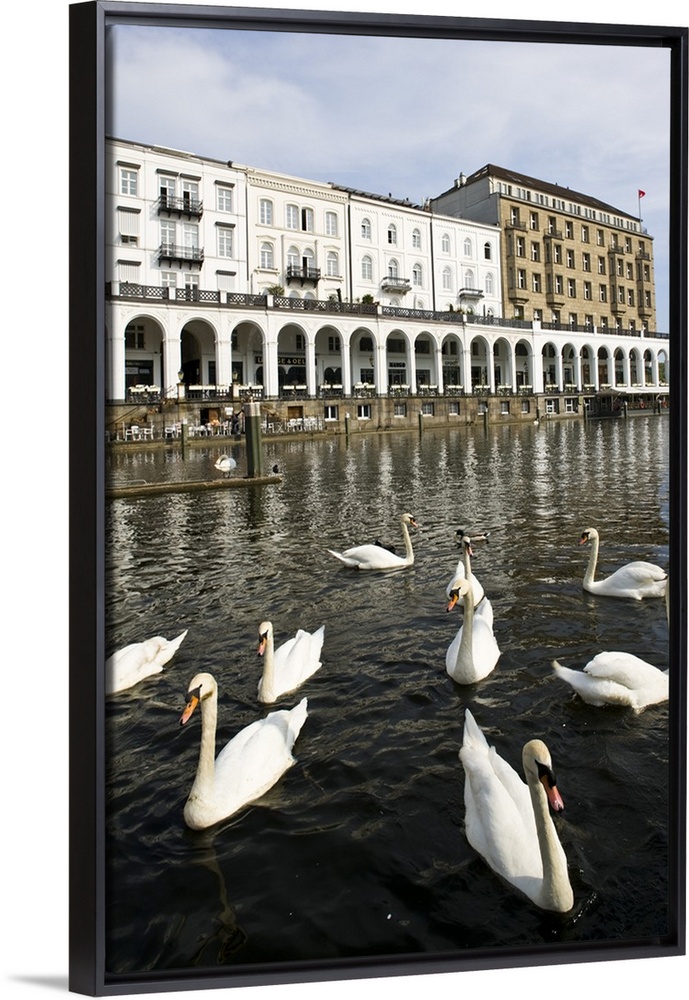 <p>Germany, State of Hamburg, Hamburg. Alsterarkaden Mall, swans.</p>