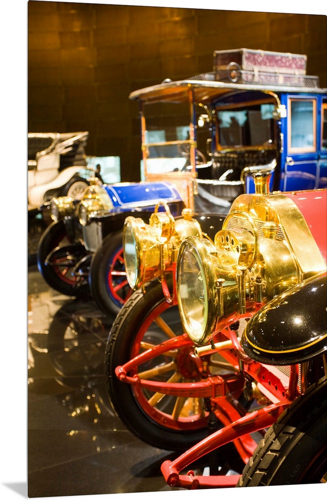 <p>Germany, Baden-Wurttemberg, Stuttgart. Mercedes Benz Museum, early 20th century Mercedes cars.</p>