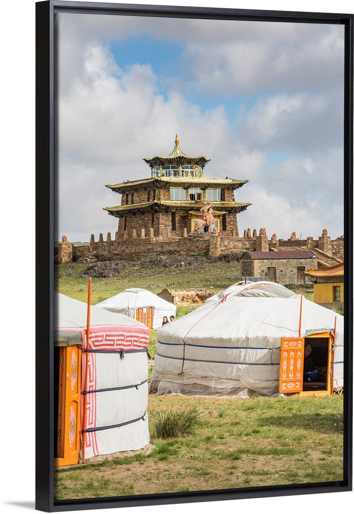 <p>Gers And Tsorjiin Khureenii Temple In The Background. Middle Gobi Province, Mongolia</p>