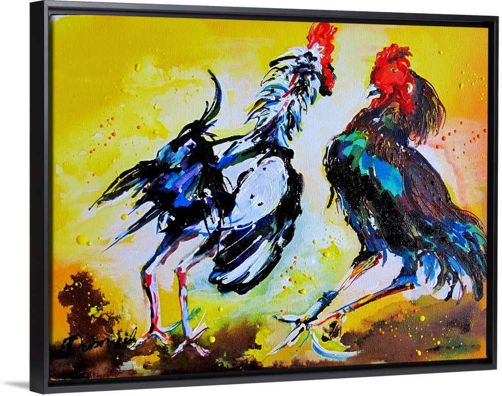 <p>Two magnificent cocks getting ready to fight. Where else but in bail.</p>