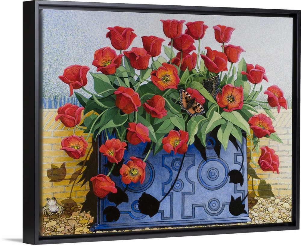 <p>PS433867 Getting There, 2011 (acrylic on calico) flowers; tulips; still life; window box; toad; frog; butterflies; by Scott, Pat (Contemporary Artist); Private Collection; English, in copyright</p>