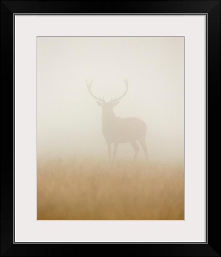 <p>A portrait of a stag standing still in a thick haze.</p>
