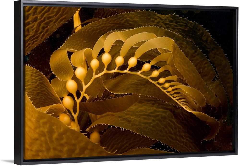 <p>Giant kelp frond showing pneumatocysts (Macrocystis pyrifera), Catalina Island, Channel Islands National Marine Sanctuary, East Pacific Ocean, California.</p>