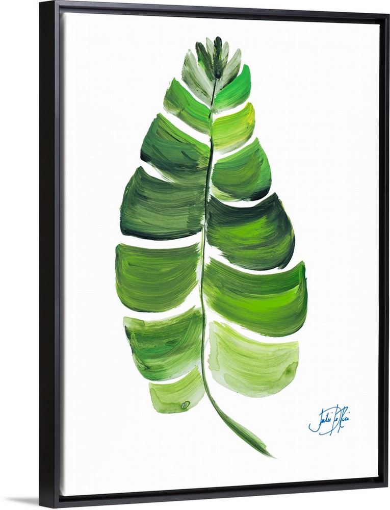 <p>A painting of a palm leaf in different shades of green.</p>
