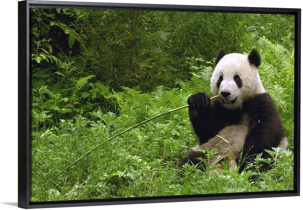 <p>Giant panda (Ailuropoda melanoleuca) in its environment Family: Ailuropodidae.Wolong China Conservation and Research Center for the Giant Panda within Wolong Reserve. Sichuan Province.CHINARANGE: Temperate bamboo forests of altitudes between 6,500 and 10,000 feet. Central Sichuan, South Gansu, East Qinling and in Shaanxi Provinces of China.ENDANGERED SPECIESLess than 1000 animals remain in the wild. Even the death penalty does not deter people from hunting these animals, but they are mostly endangered due to habitat loss.They consume about 45 pounds of a specific type of bamboo per day as well as some mosses, fungi and even small rodents. Males weigh: 85-125kg's and females weigh: 70-100 kg's. They live 10-15 years in the wild and up to 30 in captivity. Their natural predators are leopards.</p>