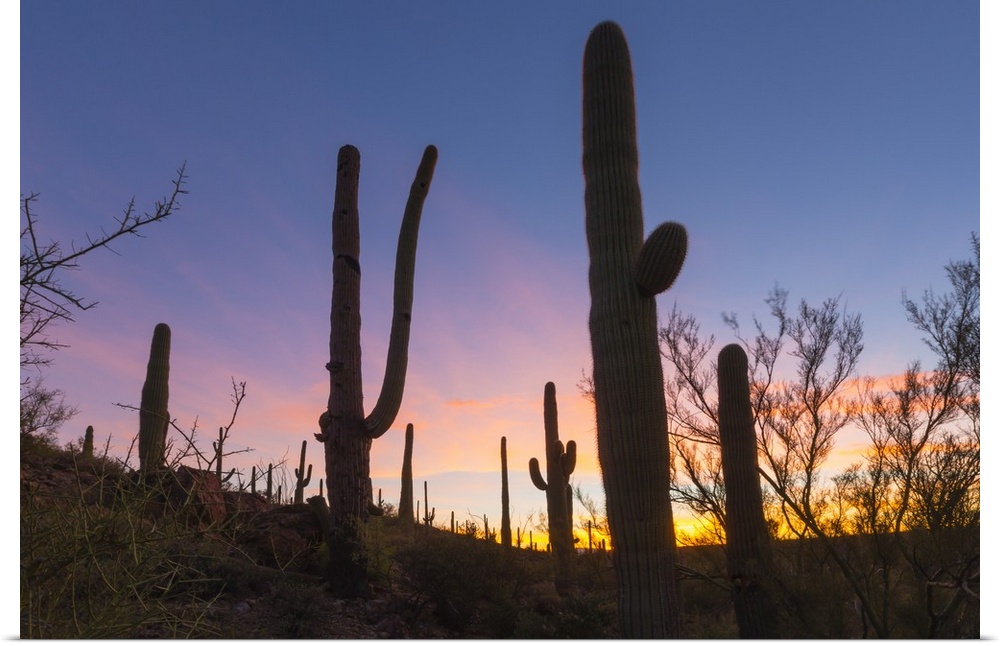 <p>Giant saguaro cactus (Carnegiea gigantea) at dawn in the Sweetwater Preserve, Tucson, Arizona, United States of America, North America</p>
