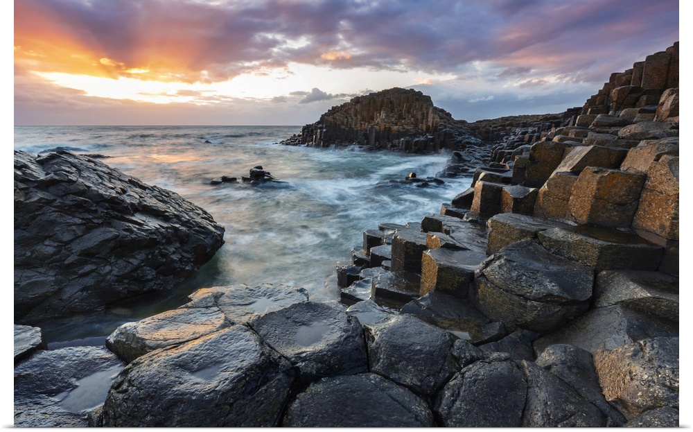 <p>Giant's Causeway at sunset, Ulster, Bushmills, County Atrim, Northern Ireland, UK</p>