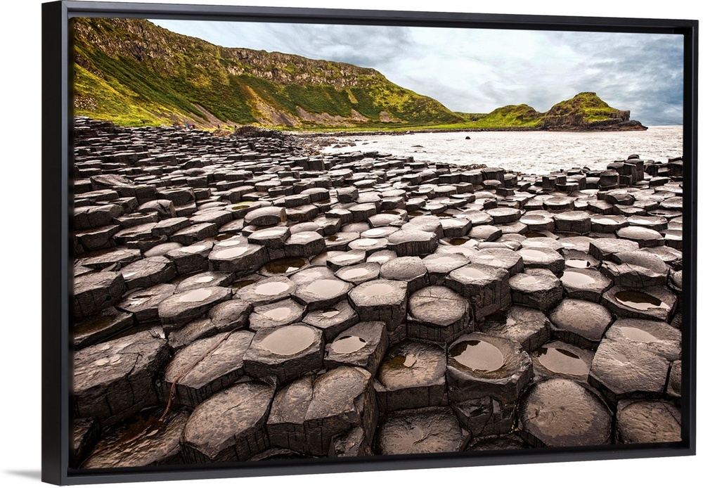 <p>Landscape photograph of the basalt columns on Giant's Causeway with rocky cliffs and the Atlantic Ocean in the background.</p>
