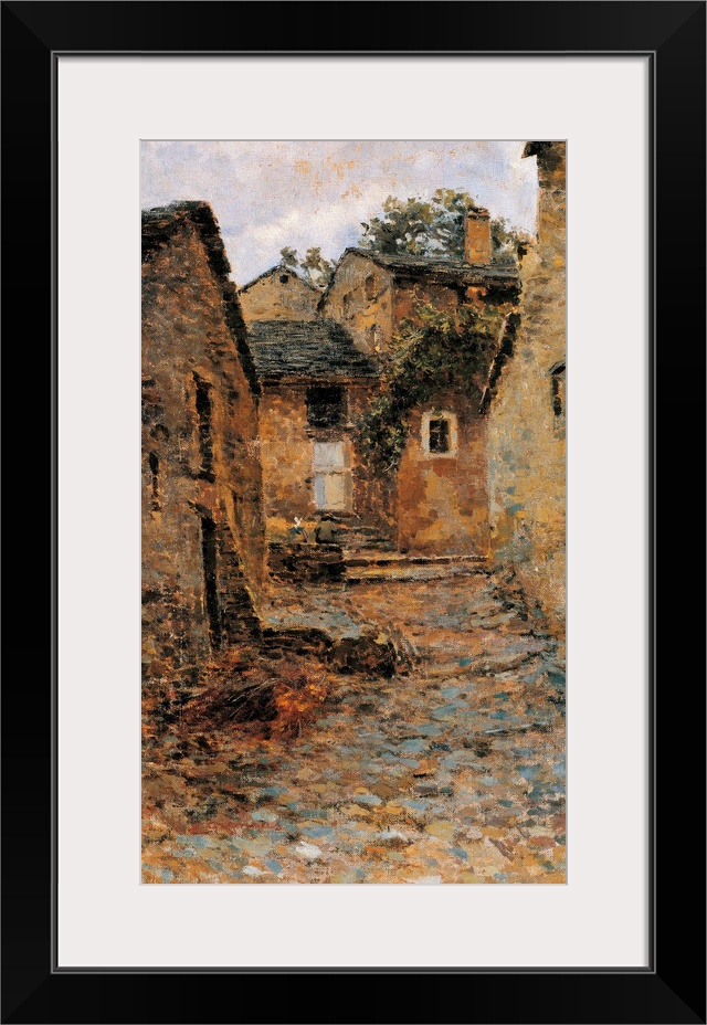 <p>Gignese (Rural Landscape), by Eugenio Gignous, 19th Century, oil on canvas, cm 67 x 38,1 - Italy, Lombardy, Milan, Banca Popolare di Milano Art Collection. All. Brown house rural road street chimney window village. (66526) Everett Collection\Mondadori Por</p>