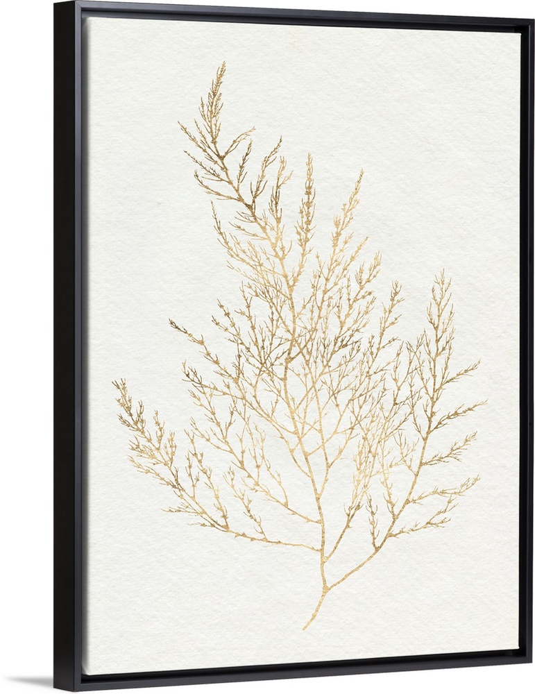 Art Coastal Beach House Décor Decorative Art Florals Marine Plants Jennifer Goldberger Metallic Wall Art Gold Painting