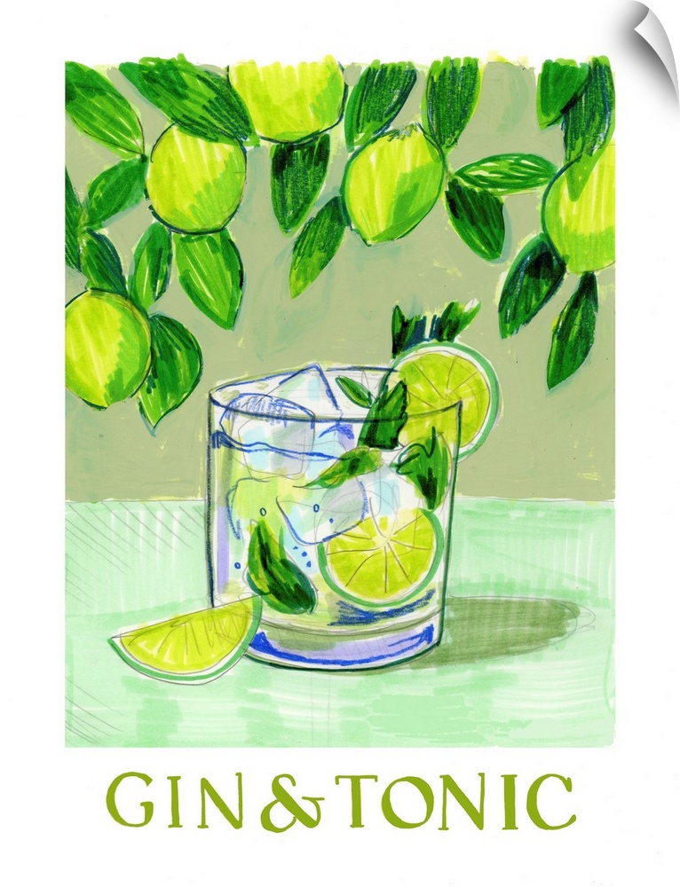 Art Bar Decorative Art Food and Drink Drinks Cocktails Green Wall Art Painting Still Life