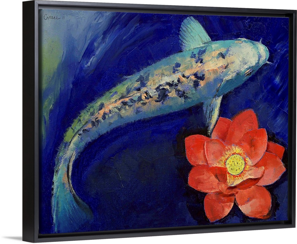 Art Blue Wall Art Contemporary Art Wildlife Michael Creese Florals Lily Water Lily Painting Wildlife Marine Life Fish Koi