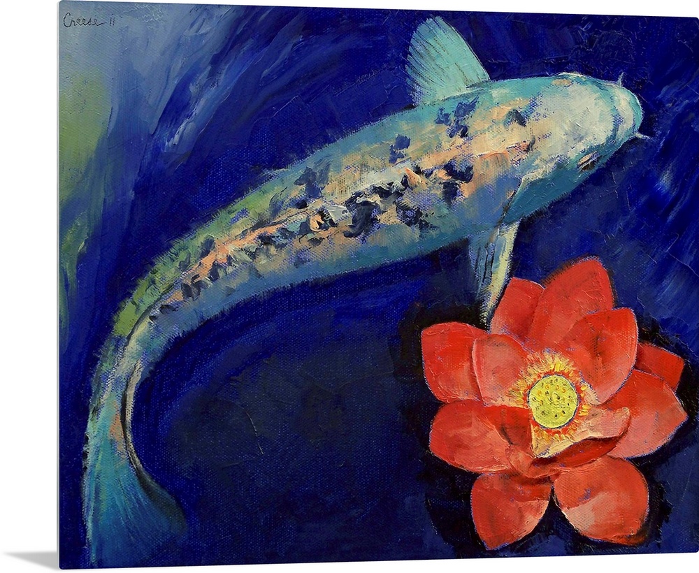 Art Blue Wall Art Contemporary Art Wildlife Michael Creese Florals Lily Water Lily Painting Wildlife Marine Life Fish Koi