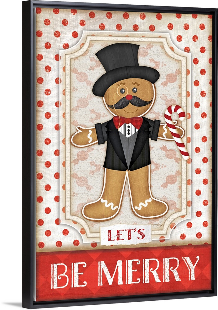 <p>Holiday themed home decor artwork of a gingerbread man against a white and red polka dotted backg...</p>