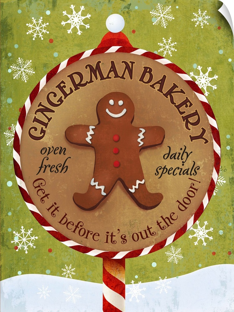 <p>Cute holiday sign for a bakery, featuring a gingerbread man.</p>