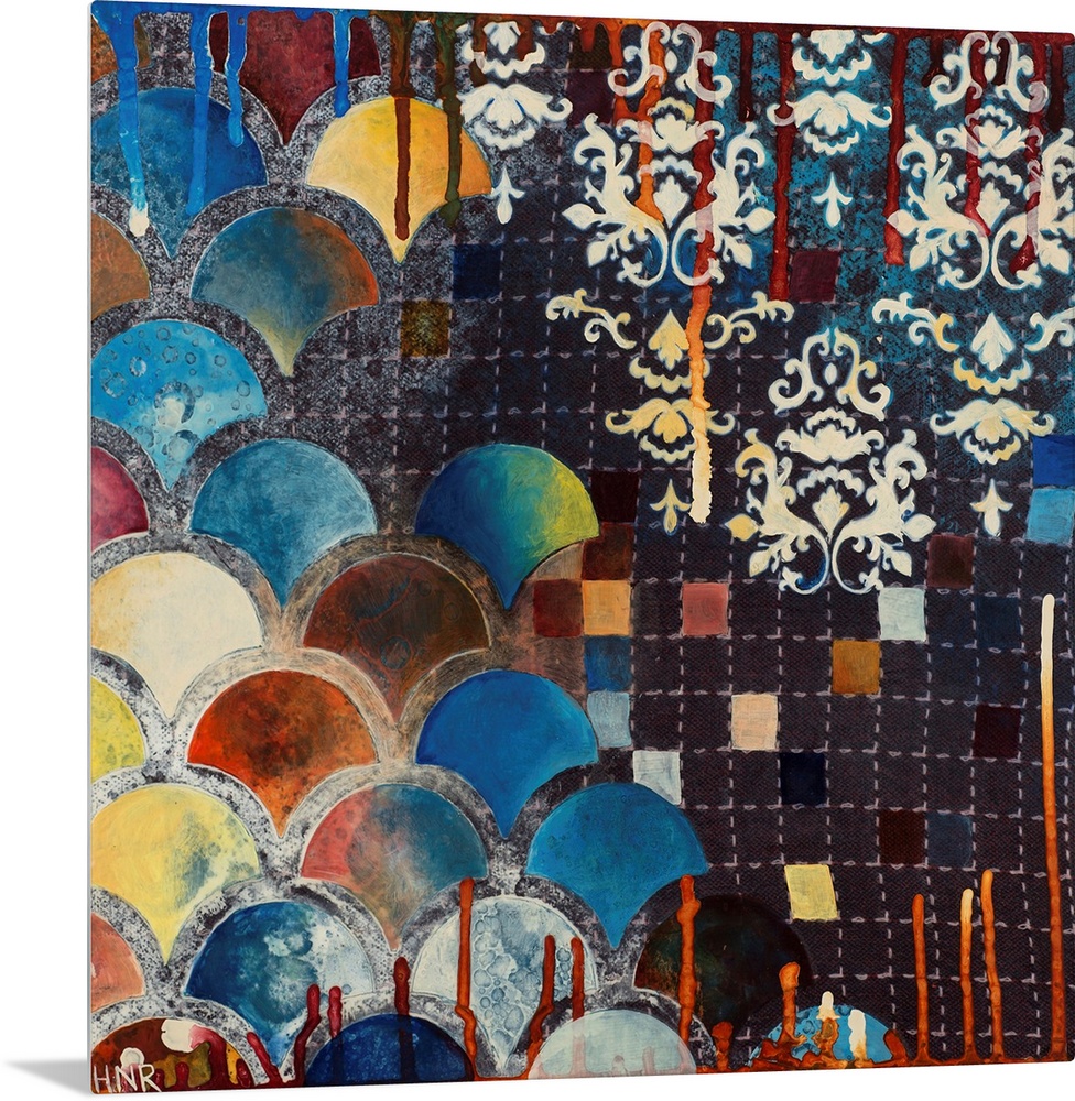 <p>Contemporary collage of a variety of different patters, motifs, and colors.</p>