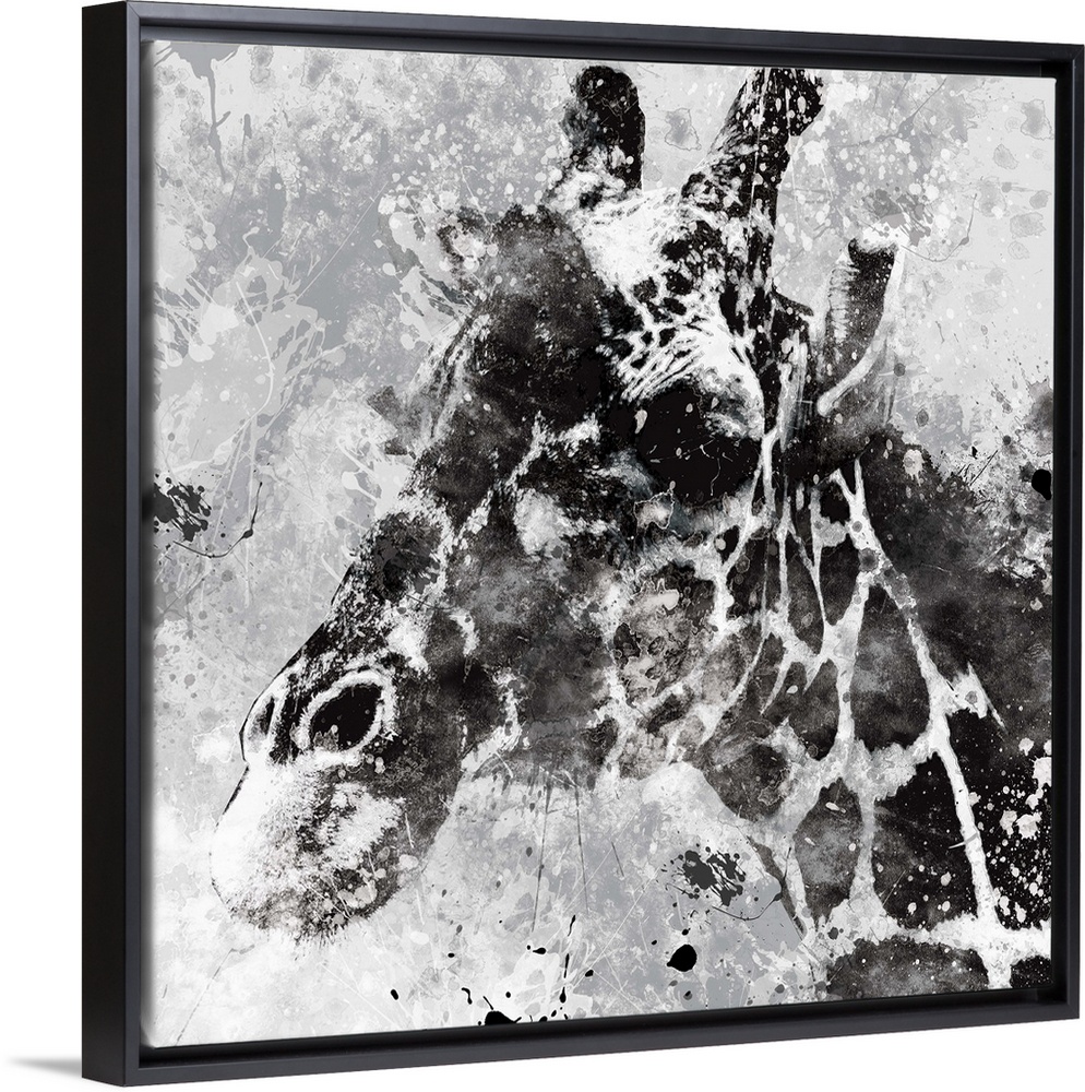 <p>Contemporary artwork of a giraffe against a textured looking background with an overall grungy and distressed look.</p>