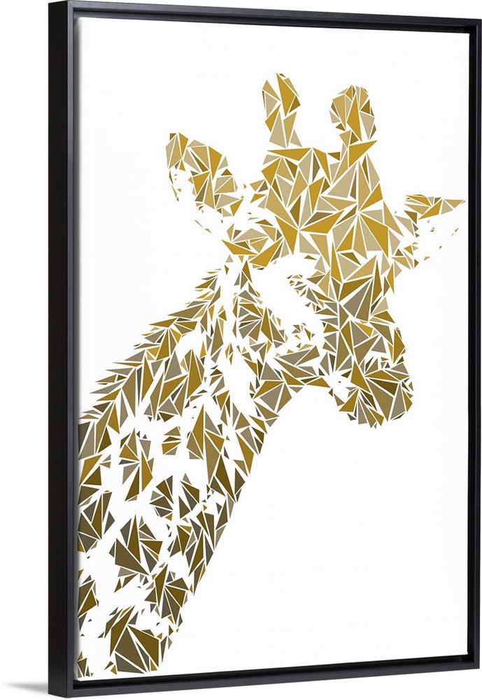 <p>A giraffe made up of triangular geometric shapes.</p>
