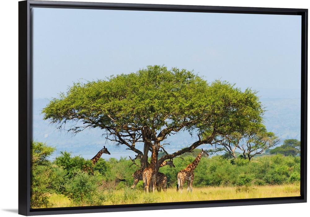<p>Giraffes under an acacia tree on the savanna, Murchison Falls National park, Uganda</p>