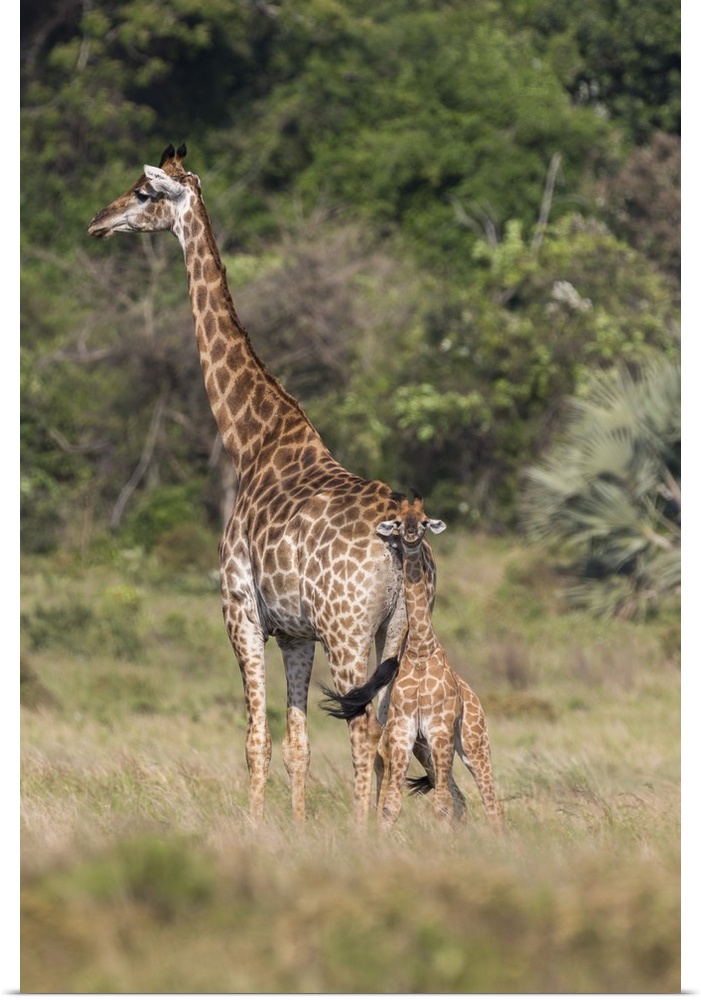 <p>Giraffe (Giraffa camelopardalis) with small baby, Isimangaliso, KawZulu-Natal, South Africa, Africa</p>