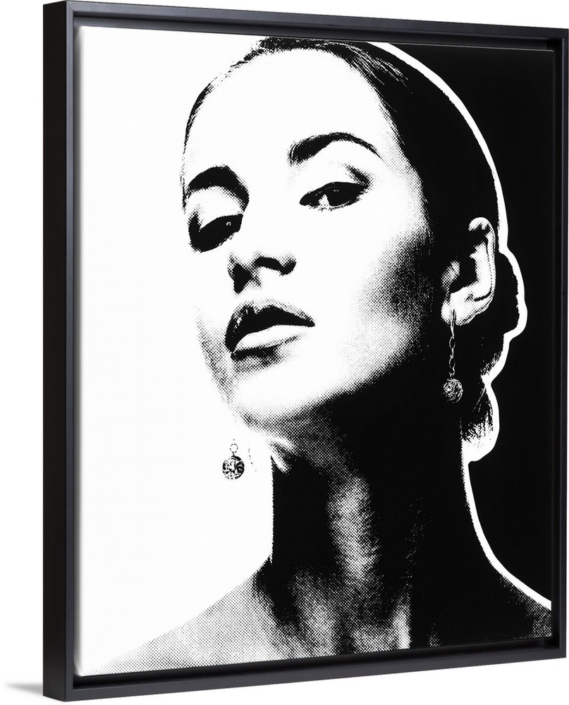 <p>Black and white pointillism illustration of a woman.</p>