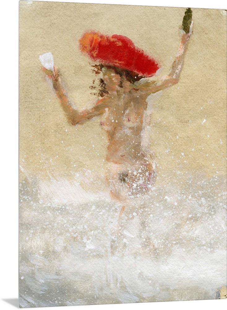 <p>Contemporary painting of a nude woman wearing a large red hat.</p>
