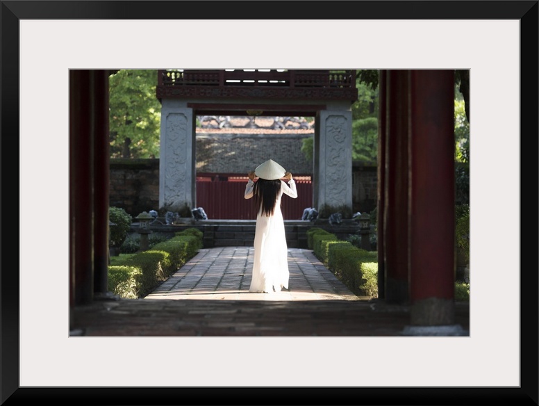 <p>Girl wearing Ao Dai dress and Non La conical hat, Temple of Literature, Hanoi, Vietnam</p>