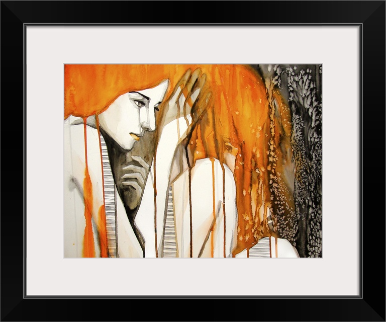 <p>Contemporary watercolor portrait of a woman with bright orange hair.</p>