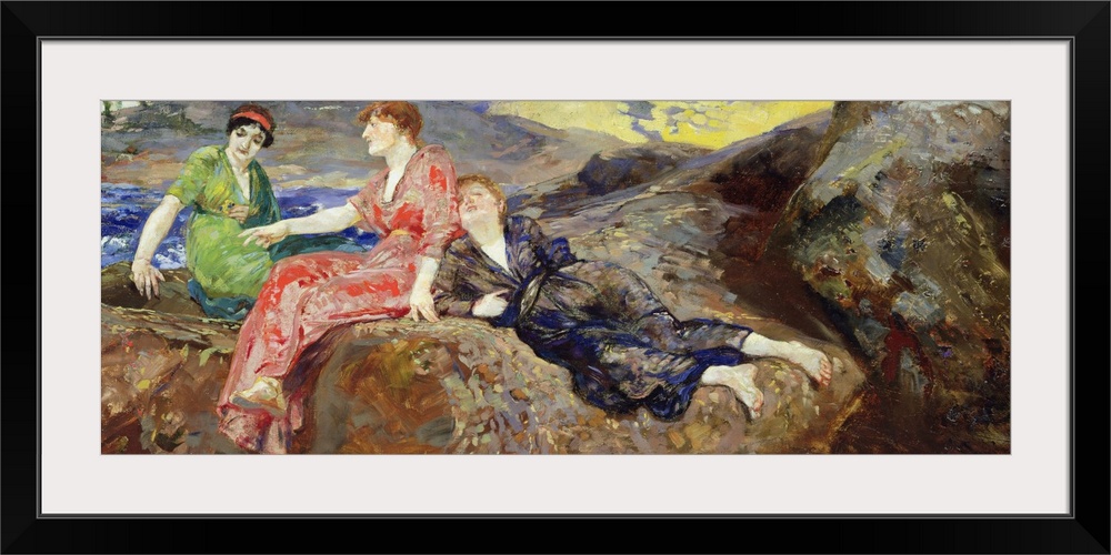 <p>XKH223050 Girls on the Shore, c.1884-85 (oil on canvas) by Klinger, Max (1857-1920); 51.5x137.5 cm; Hamburger Kunsthalle, Hamburg, Germany; German, out of copyright</p>