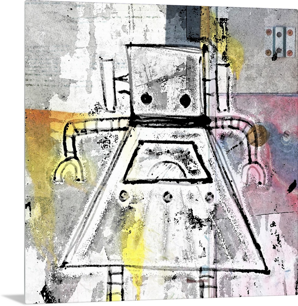 <p>Cute painting of a robot made of simple lines and shapes.</p>