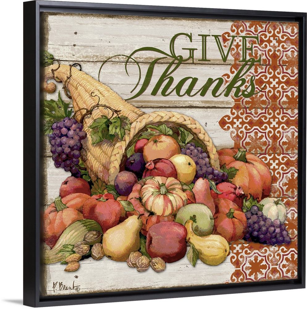 <p>Painting of a cornucopia filled with harvest vegetables.</p>