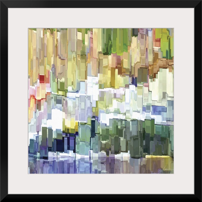 <p>Contemporary painting of muted layers of geometric shapes.</p>