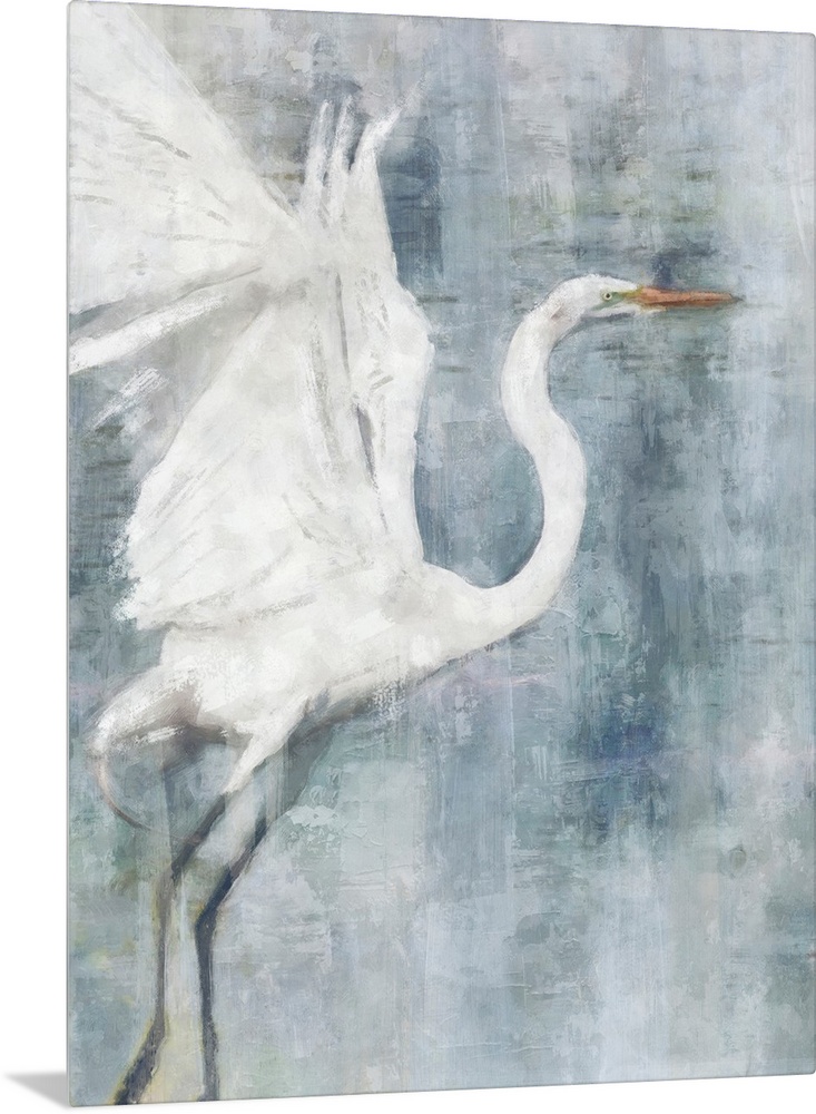 Art Coastal Nina Blue Contemporary Art Painting Wildlife Bird Heron and Egret