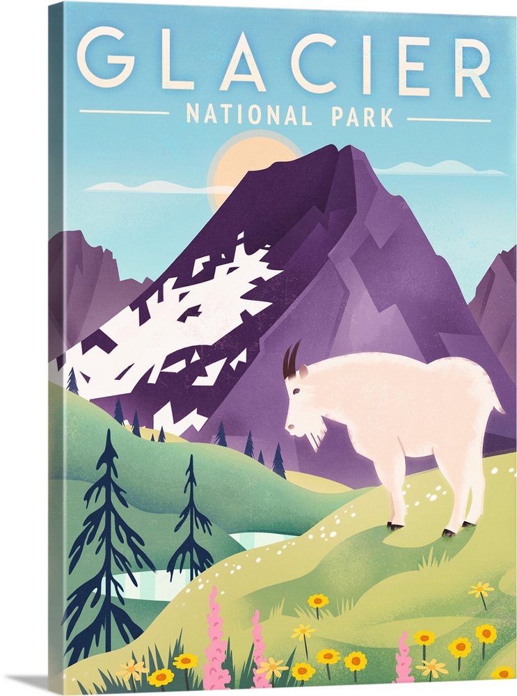 Art Decorative Art Graphic Art Landscapes Mountains Montana Glacier National Park Travel Posters Contemporary Travel Posters Martin Wickstrom Wildlife Goat