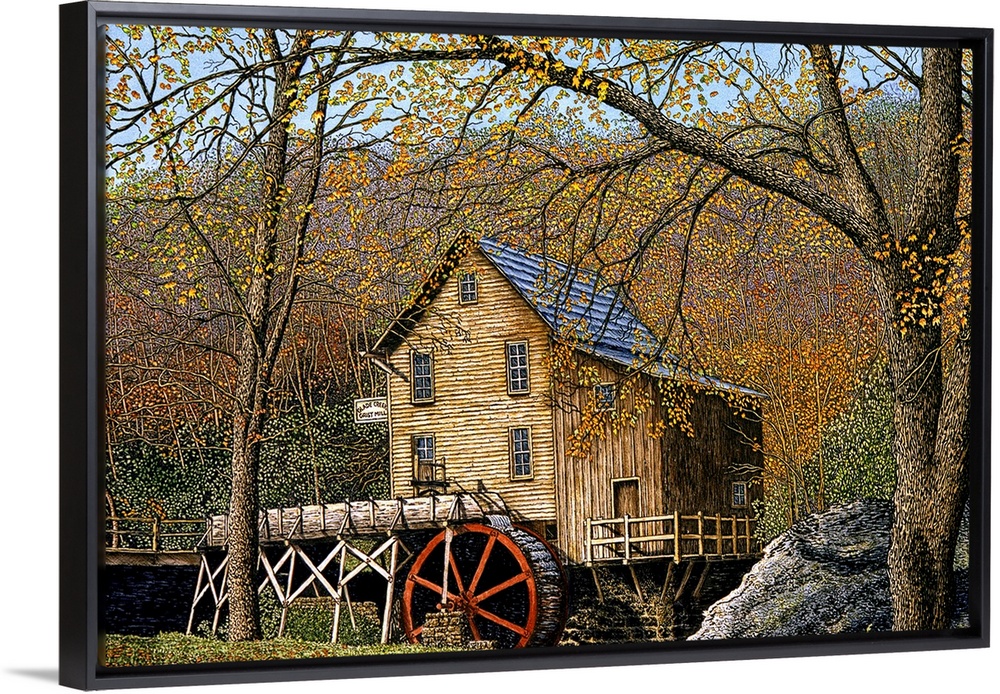 <p>Contemporary painting of a watermill in an autumn landscape.</p>