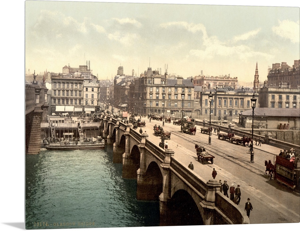 <p>Hand colored photograph of Glasgow bridge, Glasgow, Scotland.</p>
