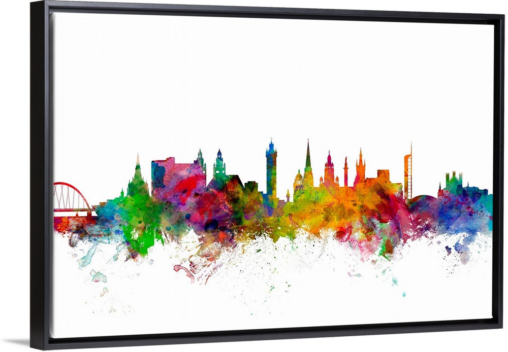 <p>Contemporary piece of artwork of the Glasgow, Scotland skyline made of colorful paint splashes.</p>