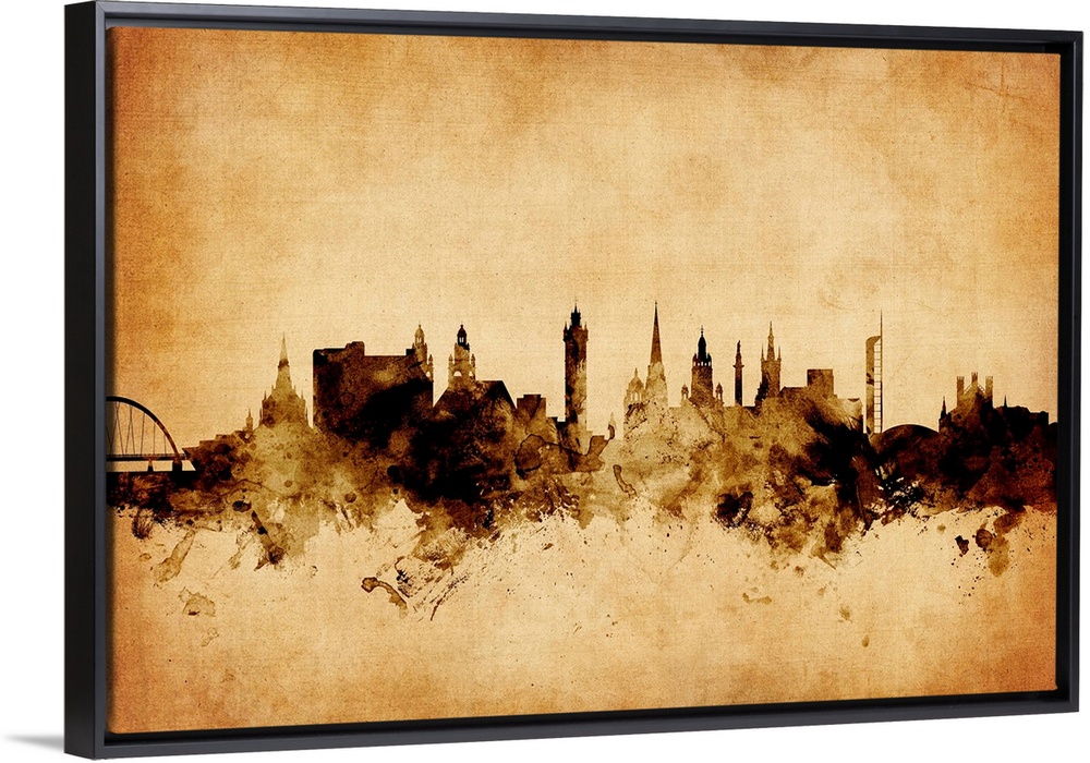 <p>Contemporary artwork of the Glasgow city skyline in a vintage distressed look.</p>
