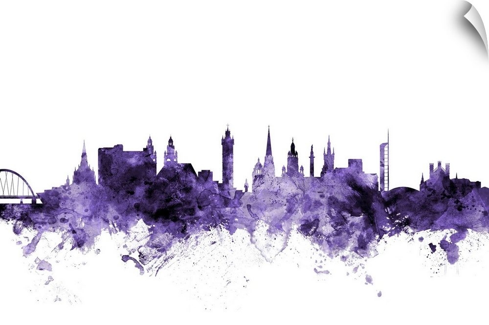 <p>Watercolor art print of the skyline of Glasgow, Scotland, United Kingdom</p>