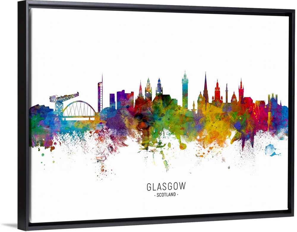 <p>Watercolor art print of the skyline of Glasgow, Scotland, United Kingdom.</p>