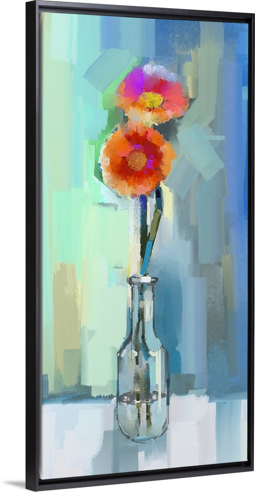 <p>Glass vase with bouquet gerbera flowers. Originally an oil painting.</p>