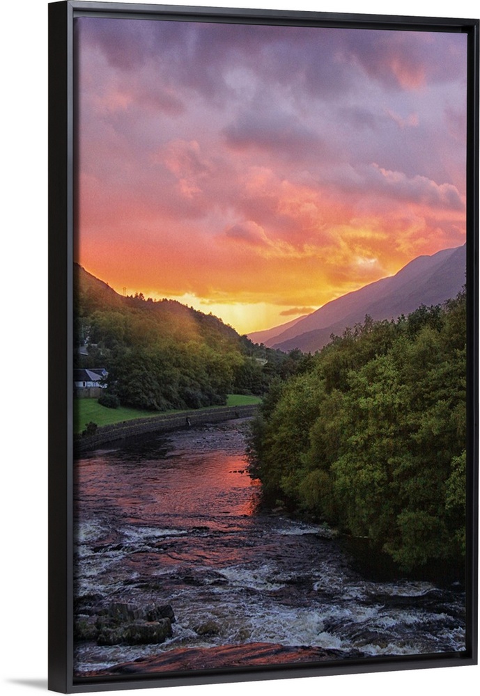 <p>Sunset illuminating the clouds over a river in Scotland.</p>