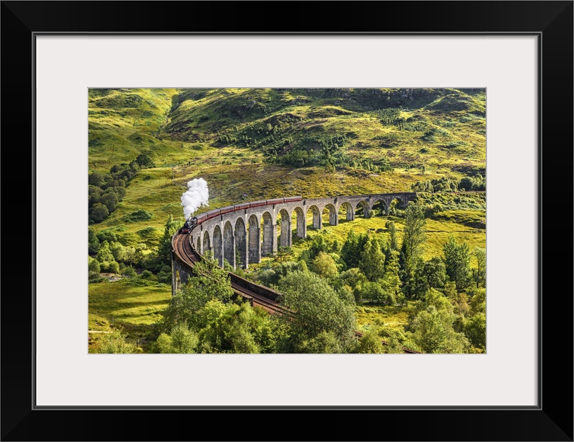 <p>Glenfinnan Railway Viaduct in Scotland with the Jacobite steam train passing over.</p>