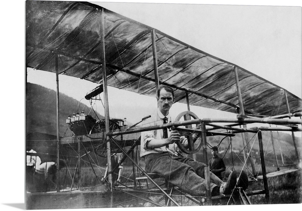 <p>American history photo of Glenn Curtiss, the founder of the aircraft industry in the United States, in his biplane. He started his career as a builder of bicycles which he also used for racing and then moved on to motorcycles and aircraft.</p>
