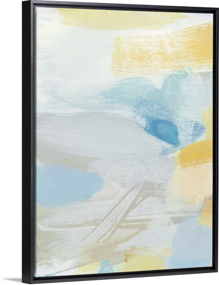 <p>Contemporary abstract art using soft pale yellows and blues mixing together to create depth.</p>